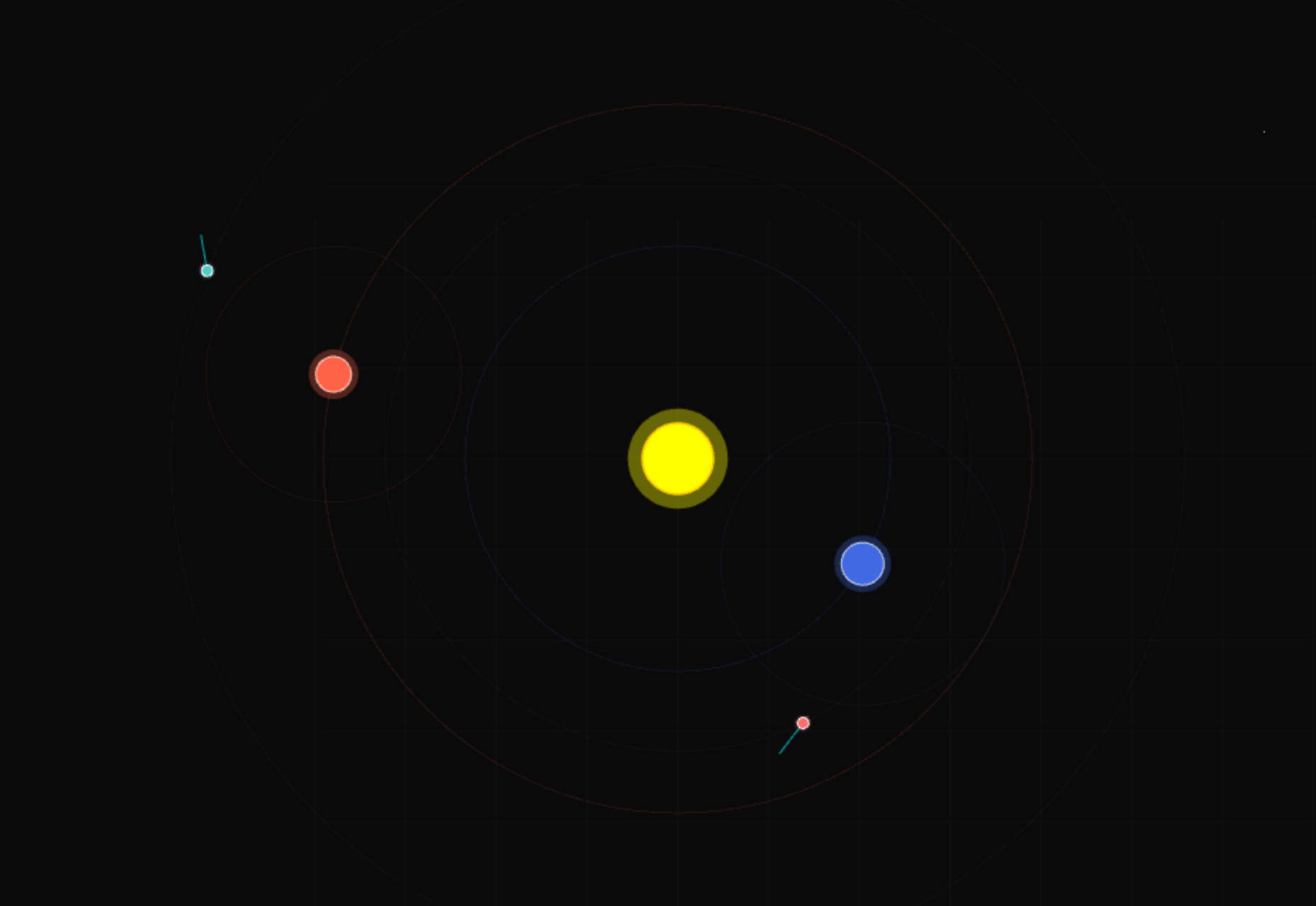Built with Phaser.js 3.70.0 rendering framework, leveraging HTML5 Canvas for visualization and ES6+ JavaScript for physics calculations. The simulation implements custom algorithms for orbital mechanics, real-time particle systems for visual feedback, and a responsive interface for parameter adjustment.